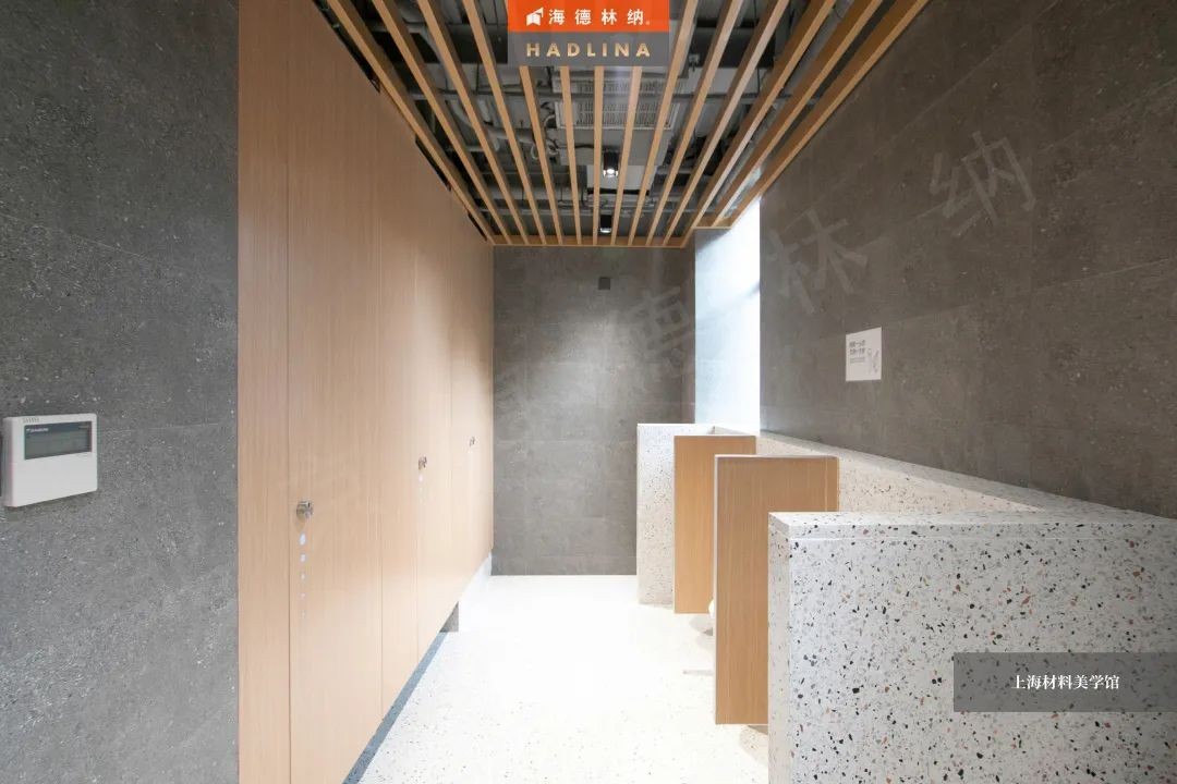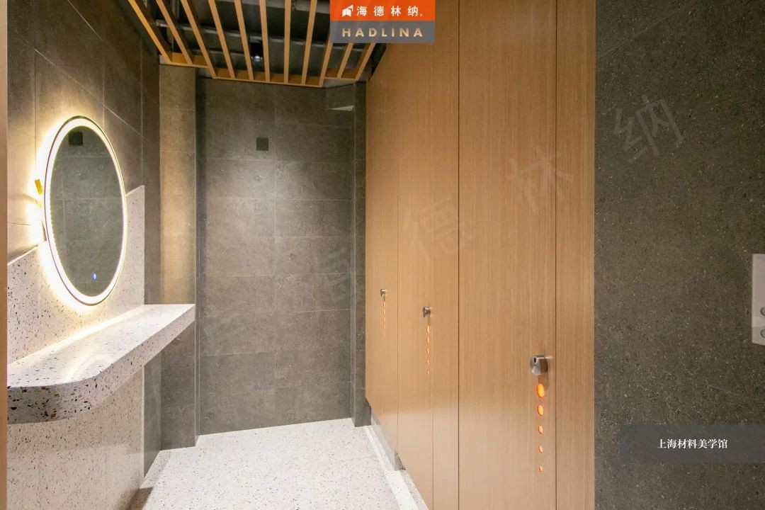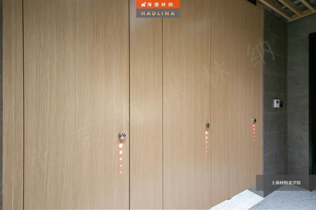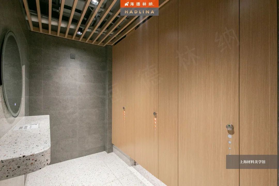 海德林納?遵循著“集中高品質,彰顯高價值”的企業理念,將產品與藝術結合,不斷創新。上海材料美學館衛生間隔斷系統由海德林納?承建,該項目采用海德林納26mm厚度的隔斷板材,將空間合理劃分,線條流暢,風格簡約,線與面完美結合,美觀大氣,充斥著藝術之美,與上海材料美學館的理念相得益彰。